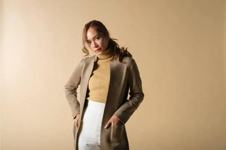 Eggplant’s deep, cool purple is sophisticated, and warm beige brings a soft balance that flatters mature skin. This palette feels luxurious yet approachable. Try a warm beige coat over an eggplant sweater dress, or pair beige trousers with an eggplant silk blouse. Both colors work beautifully with gold jewelry and leather accessories, making them ideal for both daywear and special occasions.