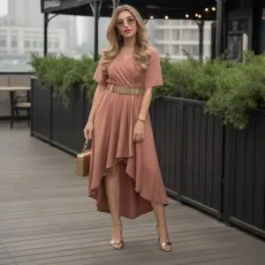 Wide-leg trousers paired with a denim jacket create a stunning juxtaposition of structured and relaxed styles, perfect for a daytime outing. The high-waisted trousers add elegance to the look, while the fitted top keeps it chic. By throwing on a faded denim jacket, the outfit lengthens the silhouette and adds an effortless cool-factor. Kitten heels bring a hint of sophistication without sacrificing comfort, making them ideal for roaming around art galleries or stylish cafes. Complete the look with eye-catching jewelry and minimalist accessories, and you’ve got a winning ensemble that’s both modern and timeless.