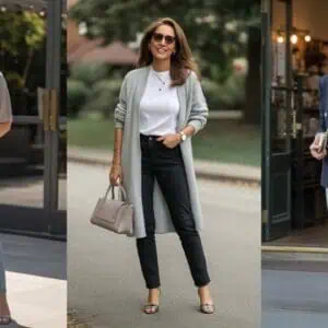 A structured blazer paired with ankle-length trousers creates a polished, refined appearance that’s perfect for sophisticated dining experiences. The tailored fit of the blazer defines your shape, lending an air of authority and elegance, while the ankle-length trousers draw attention to the ankles—perfect for showcasing those stylish loafers. Layering over a classic white blouse keeps the look fresh and timeless. Chic accessories, like a professional tote and a polished bracelet, add elevated touches, ensuring that you feel put-together without sacrificing comfort. This ensemble is a confident choice that commands respect yet remains effortlessly stylish.