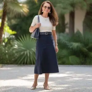 Embrace the elegance of a long-sleeve midi dress with an A-line skirt, particularly perfect for fall weddings where comfort meets style. The A-line silhouette flatters various body shapes, giving a timeless appeal while allowing ease of movement. Opt for luscious autumn hues like olive green to resonate with the season’s palette. A well-cinched waist accentuates natural curves, providing shape without compromising on comfort. Kitten heels add a touch of sophistication while keeping it practical for longer wear. Pair this stylish ensemble with structured accessories to create a polished and refined look that is both chic and age-appropriate.