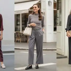 A classic white button-down shirt contrasted with wide-leg wool pants blends timeless elegance with modern flair. This combination is versatile, offering a chic option whether you’re headed to a gallery opening or a casual brunch. The crispness of the shirt enhances the structured vibe, while wide-leg pants bring in an element of ease and sophistication, flattering all body types. Their complimentary movement adds flow to your outfit, making it feel fresh and fashionable. Pairing this look with taupe loafers and a structured handbag brings a sense of balance without compromising comfort, allowing you to transition seamlessly from day to evening engagements.