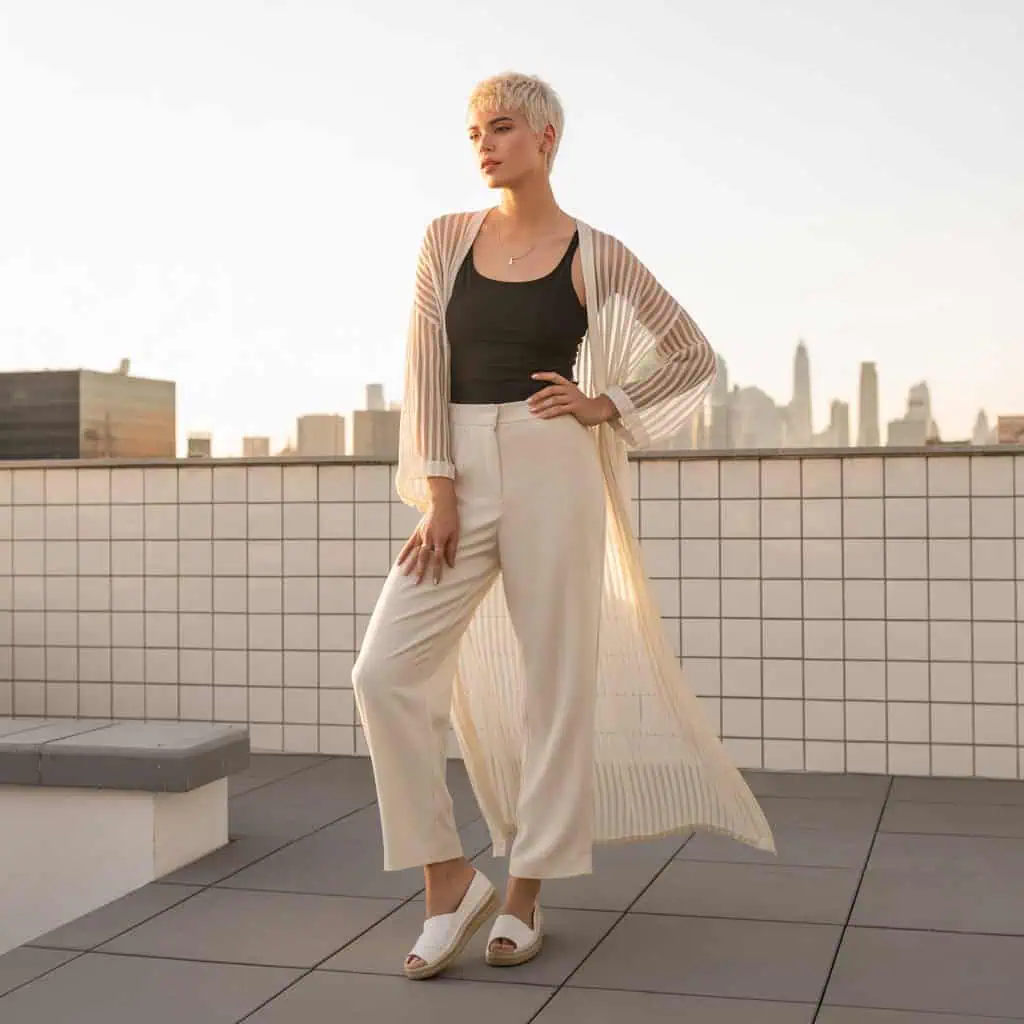 Opting for a sheer duster or longline cover-up effortlessly elevates your outfit while adding layers of intrigue and sophistication. These pieces float gracefully over any ensemble, enhancing your look without overwhelming it. Choose light, flowing fabrics in soft pastels or classic monochromes, which shimmer in the light and create an ethereal quality. Pair it with a bodycon dress, wide-leg trousers, or even a casual tank and pants for an effortless vibe. Accessories in metallics or espadrilles enhance the whimsicality of the duster, making it a versatile outfit essential that shines at both daytime brunches and evening gatherings.