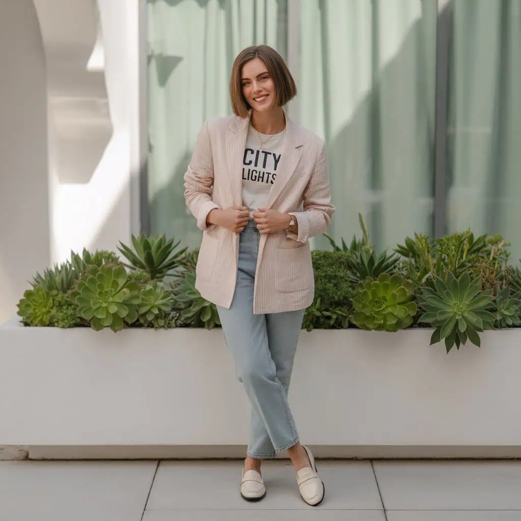 The lightweight linen blazer is the epitome of effortless chic, transcending trends while seamlessly integrating into any wardrobe. Its breathable fabric and tailored silhouette are perfect for both summer afternoon soirees and cozy fall gatherings. In soft pastels or classic neutrals, this layering piece can be paired with everything from a graphic tee and high-waisted jeans to a flowy maxi dress. Roll the sleeves for an added touch of laid-back sophistication, or style it over an off-the-shoulder top to enhance your summer outfits. Pair with loafers or pointy-toed flats for an ensemble that whispers refinement without losing comfort.