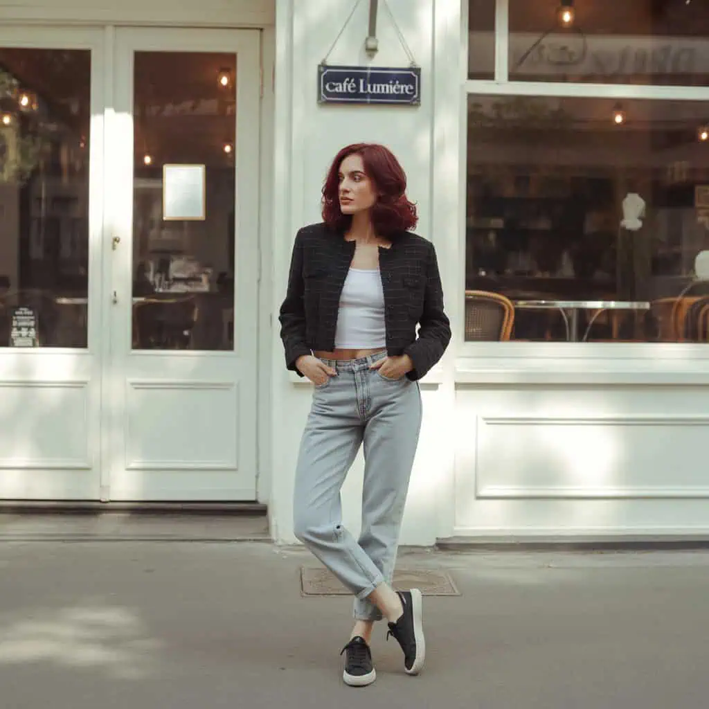 The cropped tweed jacket encapsulates classic elegance while infusing contemporary flair into your wardrobe. Its tailored silhouette sculpts the body while the fabric adds a tactile quality that’s both chic and sophisticated. Opt for patterns like houndstooth or bouclé in dark hues to create a refined yet approachable look. Layer it over a soft tank or white fitted top and light-wash straight jeans, or throw it on with a bold mini skirt and heels for an evening out. Accessorize with statement pearls or metallic accents to elevate the look from day to night.