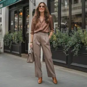 This formula works by creating balance between comfort and shape. Relaxed pants offer ease of movement and all day wearability, while a fitted or structured top provides definition. Without that balance, outfits can feel shapeless. Accessories such as a structured bag, belt, or intentional jewelry signal completion. Women over 50 rely on this combination because it allows comfort without sacrificing polish. The confidence comes from knowing the outfit feels relaxed but still looks thoughtful. This formula is especially useful for everyday wear, travel, or long days when comfort is essential.