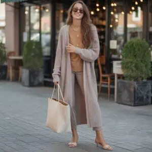 Dressing in a single color can play tricks on the eye, creating a continuous line that elongates your silhouette. For instance, pairing a dove gray oversized sweater with matching wide-leg trousers not only brings cohesion to your look but also provides a chic vibe that’s effortlessly trendy. The soft tones soften the visual impact, offering a subtle elegance that keeps focus on your overall presence rather than breaking it up with contrasting colors. Adding soft accessories like gradient sunglasses and a light tote complements the monochromatic palette, enhancing your style without detracting from that streamlined effect.
