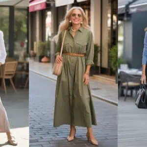 A fitted cherry red shift dress is a timeless piece that radiates charm and confidence, especially for those over 50. Its streamlined silhouette draws attention to your waist while providing comfort in movement, making it a fabulous choice for a day out. Balancing the brightness of the dress with sleek black tights elongates the legs and adds a sophisticated contrast. Refined black ballet flats seamlessly elevate the outfit while keeping it grounded, creating an effortless style. Accessorizing with a clutch and oversized sunglasses adds just the right amount of flair, making it a perfect option for celebratory occasions or stylish outings.