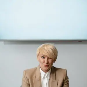 Elevating the concept of chic minimalism, a monochrome linen-blend blazer set in soft light taupe is perfect for those seeking a polished yet relaxed outfit. The tailored fit of the blazer paired with equally chic trousers exudes confidence while maintaining comfort—an essential balance for any well-dressed woman. The linen blend fabric brings an airy quality, ideal for warmer days, allowing easy movement without sacrificing style. A structured handbag and chic sunglasses lift the entire ensemble, adding subtle sophistication that speaks volumes. This look stands strong on its own, relying on its clean lines and muted palette to make an indelible impression.
