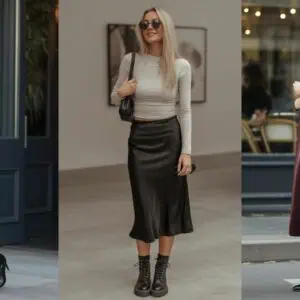 Elegance often lies in the subtleties of fabric and fit, and a flowing cream silk wrap midi dress does just that. The luxurious texture of silk drapes beautifully, enhancing the feminine silhouette while the cinched waist adds definition. Choosing beige ankle boots complements the soft color palette and supports the flowing nature of the dress, ensuring a harmonious look. Accessories like oversized sunglasses and a structured taupe handbag maintain an upscale aesthetic, making the entire outfit effortlessly stylish for any occasion. This proves that opting for elegant materials can be just as powerful as bold colors, creating a refined and sophisticated statement.