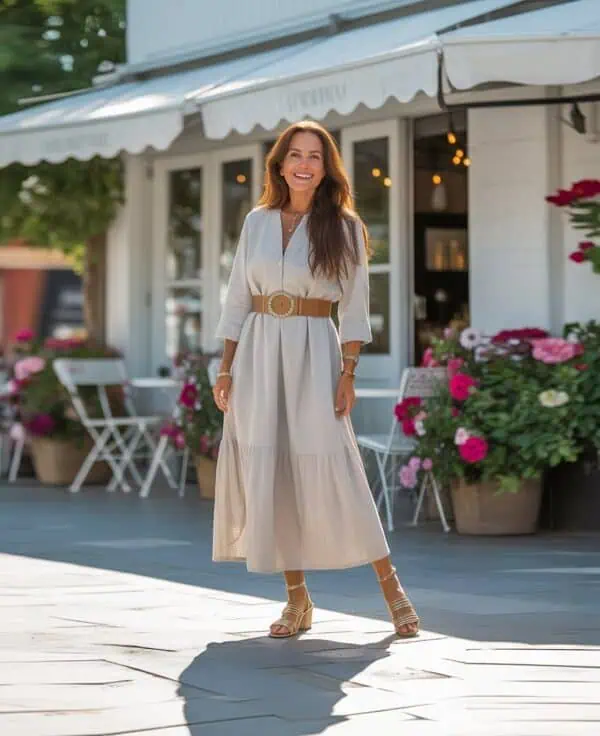 Flowing and romantic, the boho maxi dress was a favorite among free spirits. Often featuring floral prints, crochet details, or ethnic embroidery, it offered ease and expression. Worn with suede boots, fringe bags, and layered necklaces, it reflected the decade’s embrace of natural beauty and cultural fusion. The dress swayed with every step, and its versatility made it perfect for beach days, road trips, or sunset parties. Inspired by the hippie movement, this look was as comfortable as it was captivating. Think Stevie Nicks twirling on stage, that’s the vibe.