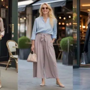 A-line midi skirts are a go-to for women over 40, combining ease and elegance. The silhouette flatters a variety of body types, gently skimming over the hips while accentuating the waist. Opt for fabrics like cotton or silk for a breathable feel that moves with you. Pair this style with a fitted top to balance the volume of the skirt, creating an effortlessly chic look. Add pointy-toed flats or low heels for comfort without sacrificing sophistication. It’s a versatile piece that can transition seamlessly from casual brunches to more formal events, making it a wardrobe staple.
