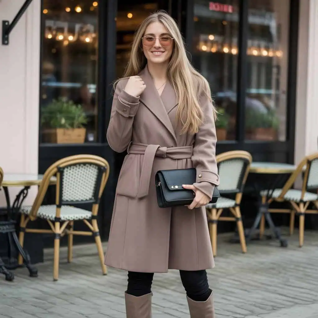 Cinch your winter coat with a stylish belt to create a defined silhouette that enhances your overall look. This technique works wonders, especially when you’re wearing an oversized coat, as it transforms it into a figure-flattering ensemble. Pairing the cinched coat with accessories and leggings not only adds elegance but also smooths your silhouette, giving you that polished appearance. Complete the outfit with chic accessories like oversized square sunglasses and a structured handbag, and you’ve got a sophisticated yet effortlessly warm look—perfect for navigating chilly days in style.