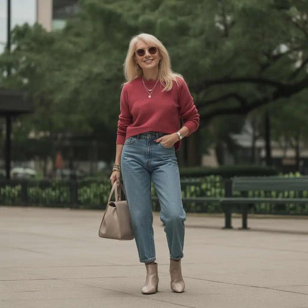 Distressed denim has its place, but when paired with a plain basic knit, the outfit feels unfinished and overly youthful in a way that doesn’t translate into chic maturity. The rips call for edginess, while the basic knit offers none, resulting in a confusing aesthetic. Tucking in the sweater helps, but only slightly. The overall effect is too casual and disregards the polished sophistication that most women over 60 prefer. Even boots and accessories fail to elevate it enough to feel intentional.