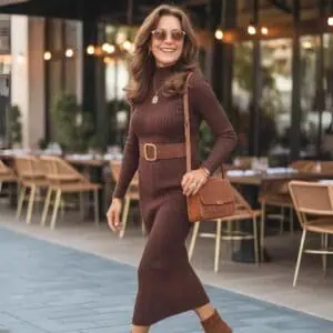 A tailored blazer is a wardrobe staple that exudes sophistication and versatility, perfect for French women over 60 who want to project effortless elegance. The classic cut creates a flattering silhouette, especially when layered over a simple white tee, allowing for a chic yet relaxed look. Combining it with dark blue straight-leg jeans strikes a harmonious balance between comfort and refinement, while a slim leather belt adds structure and helps define the waist. The outfit’s accessories, such as aviator sunglasses and minimal gold jewelry, elevate it to a modern level, showing how simple touches can make all the difference in portraying confidence and style.