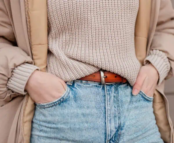 Oversized knit sweaters are a wardrobe staple that perfectly balance comfort and style. Their soft, relaxed fit provides ample room without sacrificing elegance, making them ideal for fuller figures. A cozy cream hue is timeless and versatile, blending seamlessly with a variety of bottoms, from slim trousers to your favorite jeans. Pairing this type of sweater with large hoop earrings brings an element of fun and personality to the outfit, while the loafers keep it grounded yet stylish. This look is not just about cozying up; it’s about exuding a confidence that comes from knowing you look effortlessly chic while enjoying charm and warmth.