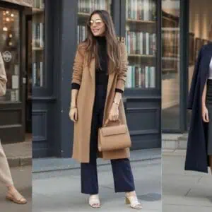 Imagine draping yourself in a timeless camel coat, its warmth softening the crisp air while effortlessly elevating your outfit. Layering with a chunky cream knit sweater and a sleek turtleneck not only adds texture but also ensures you’re cozy without sacrificing style. The versatility of these layers allows you to adjust according to the day’s mood or weather; simply shed a layer if it warms up. Paired with block-heeled ankle boots, you’ll enjoy both comfort and a chic silhouette. This outfit is the perfect bridge between chilly mornings and mild afternoons, exuding an air of casual sophistication that’s always in vogue.