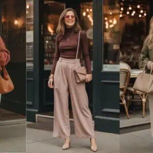 Color contrast plays a big role in shaping perception. Darker shades on the bottom visually slim the hips and legs, while lighter hues on top draw attention upward toward your face. Pair black, charcoal, or espresso trousers with ivory or soft blush sweaters for balance. This approach naturally directs the eye upward, creating a lifted, slimming effect. It’s a simple yet powerful styling method that keeps your look dynamic while maintaining sleek proportions.