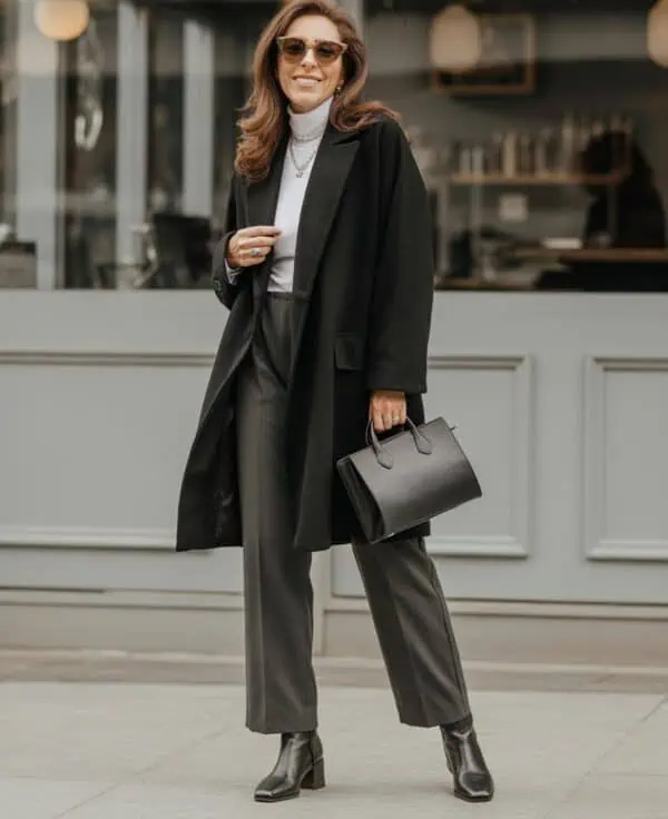 Winter shoes can be tricky, and pairing wide-leg pants with bulky boots often creates a stumpier, heavier silhouette. The pant hem catches on the boot, creating creases and chopping the leg line. To keep your look sleek, choose slim or mid-width pants for tall winter boots, and save wide-leg trousers for ankle boots or sleek sneakers. This simple proportion tweak keeps your legs elongated and your outfits clean-lined. When your proportions flow, your entire silhouette looks more youthful and intentional.