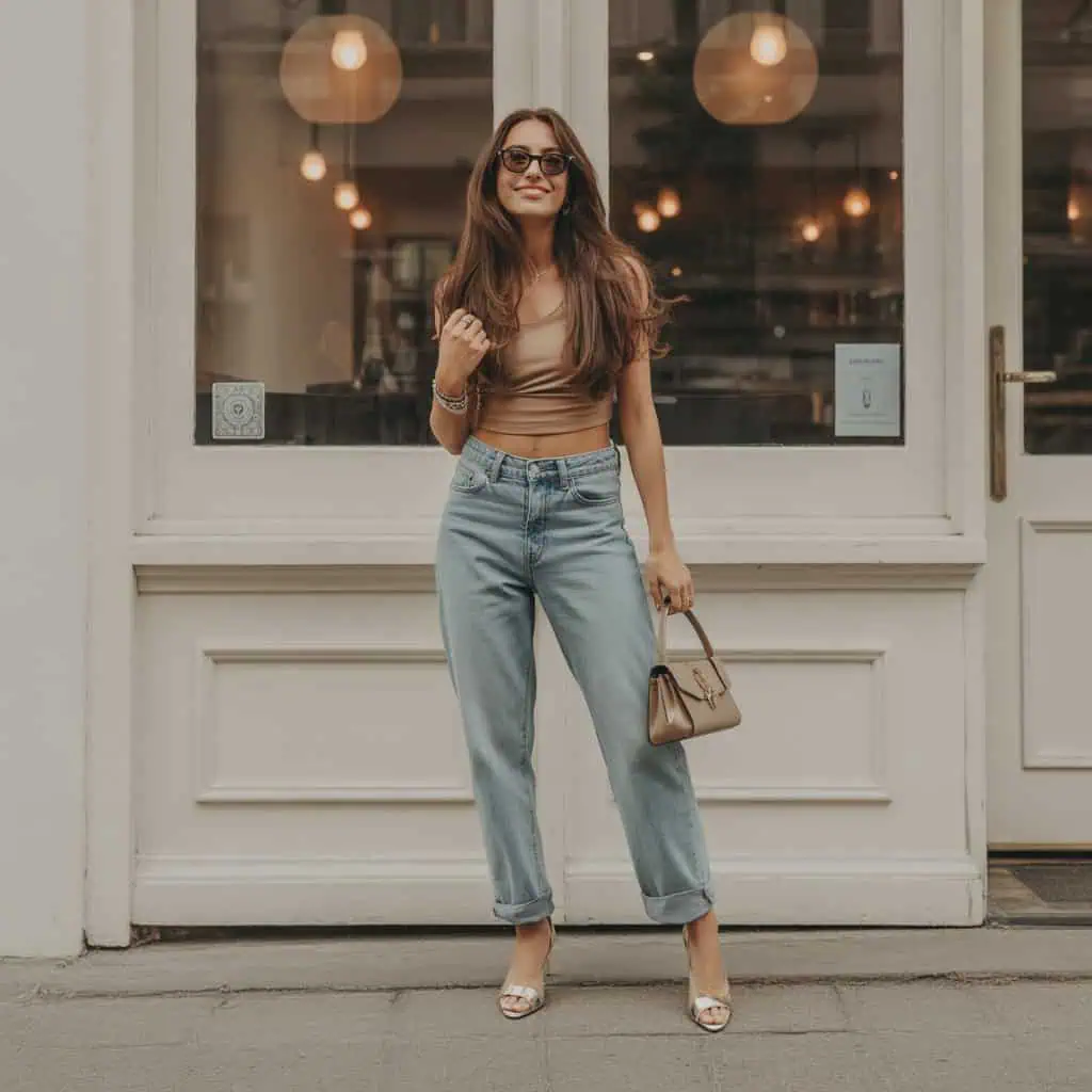 There’s something undeniably nostalgic and bold about pairing low-rise jeans with a crop top that reveals a sliver of midriff. This look captures the carefree spirit of the early 2000s and has made a resurgence, albeit with some nuances for today’s style. Opting for high-quality, tailored versions of low-rise jeans can elevate this outfit beyond its youthful roots, allowing it to suit a more sophisticated ensemble. Accent with chic heels, statement sunglasses, and refined jewelry to bridge the gap between playful and polished. When styled thoughtfully, this combination can exude confidence without skewing too juvenile, making it a fun yet tasteful choice for a variety of occasions.