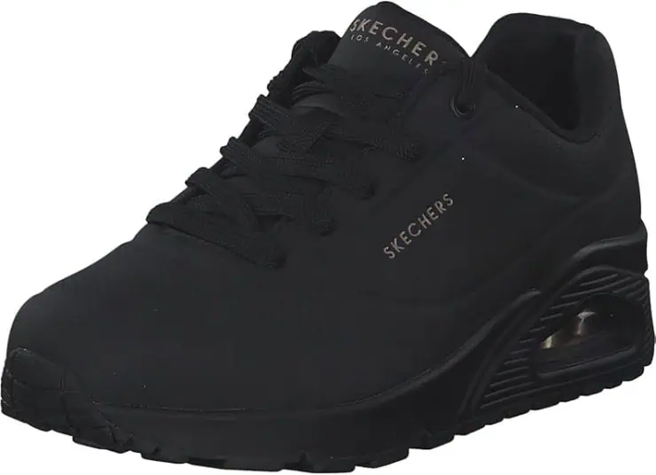 The Skechers Street Uno – Stand On Air sneakers are the perfect balance of style and all day comfort, making them a favorite for women who want supportive footwear without sacrificing looks. Designed with a sleek synthetic “durabuck” upper and perforated details for breathability, these lace-up sneakers also feature a padded collar and tongue for extra comfort. The real standout is the Air Cooled Memory Foam insole paired with a visible Skech Air air cushioned midsole, which absorbs impact and reduces foot fatigue even during long days.