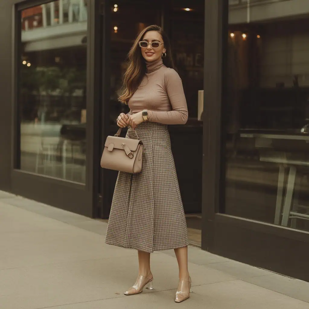 Shoes play a pivotal role in crafting your overall style, so sticking to outdated options can really detract from your outfit’s impact. While loafers can bring a retro charm, if they look dated, they might clash with the modern aesthetic of a stylish plaid skirt and fitted turtleneck. Selecting more contemporary footwear not only uplifts your fashion game but also complements your look’s timelessness. Opt for chic ankle boots or sleek trainers that carry a sense of current trends. It’s those little details that can elevate your outfit and keep your style fresh and relevant.