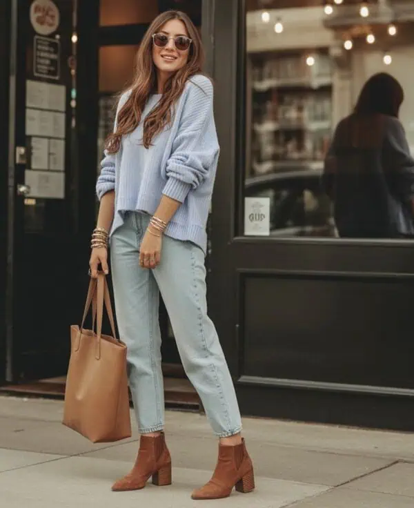 A chambray tunic effortlessly combines elegance and ease, making it perfect for a vacation outfit. The light blue tone offers a fresh, airy vibe, while the relaxed fit provides comfort for all-day wear. White jeans serve as an ideal counterpart, reflecting sunlight and enhancing the overall brightness of the look. This combination creates an inviting silhouette that flatters most body types, particularly when you choose a tunic that gently skims the figure. Ballet flats bring a touch of sophistication without sacrificing comfort, making navigation through travel adventures a breeze. The crossbody bag adds a trendy functional edge, while stylish sunglasses tie the ensemble together, ensuring you look fabulous whether dining al fresco or enjoying a leisurely stroll.