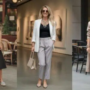 If you’re seeking the perfect blend of style and comfort, polished loafers or block heels are your best friends. These footwear options provide functionality without compromising on elegance, making them ideal for the discerning woman over 50. A pair of chic black block heels meld seamlessly with tailored navy trousers while ensuring you stay poised without straining your feet. When combined with a finely crafted outfit, like a delicate black lace blouse, these shoes can elevate your look to an undeniably chic level. Accessories such as a structured clutch and classic sunglasses complete this polished appearance, giving you that extra edge yet maintaining a sense of ease. This thoughtful approach to footwear assures you will be fashionable and comfortable, a winning combination for any occasion.