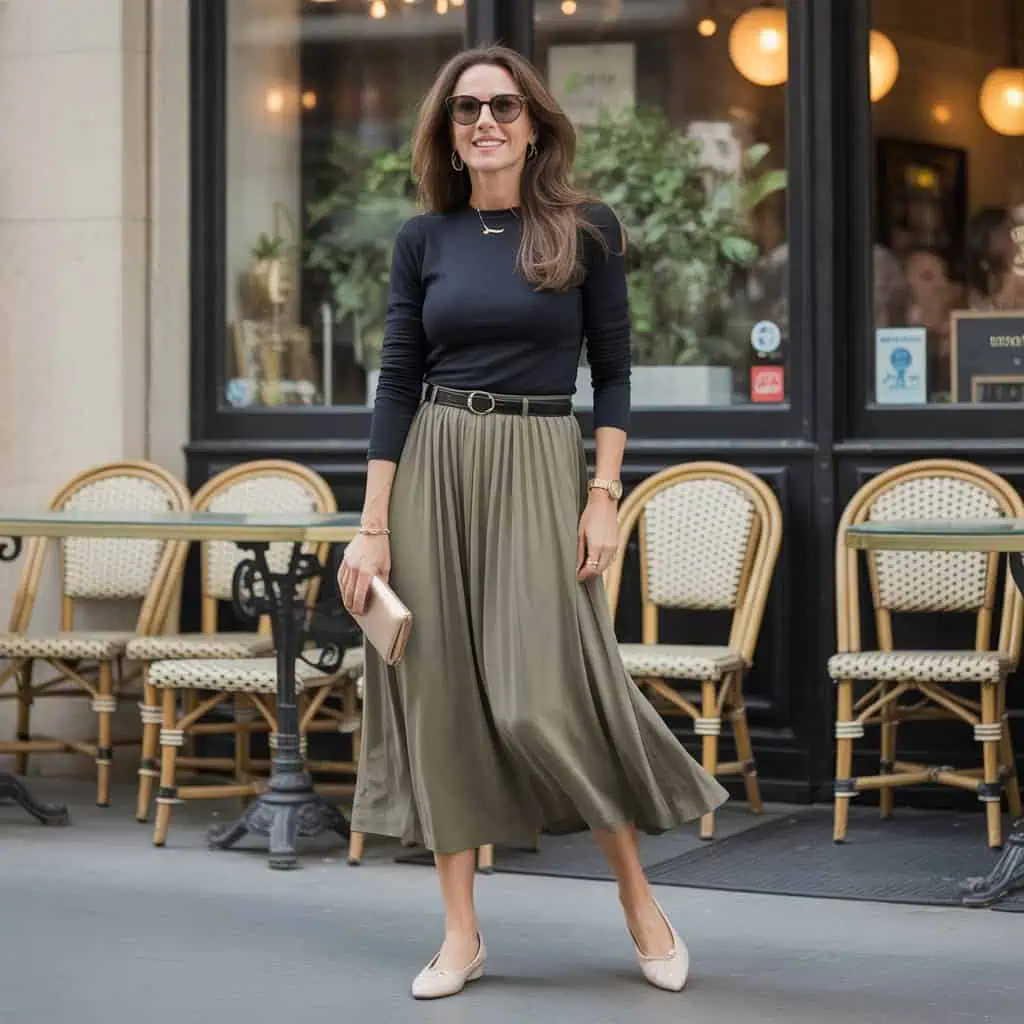 Swinging from mini skirts to midi lengths is a game changer that combines comfort with chicness perfectly. Midi skirts, especially those that cinch at the waist, flatter diverse body types while providing graceful movement. Opt for flowy fabrics that create an alluring silhouette without compromising on modesty. Pairing a fitted top tucked in allows for a flattering definition at the waist, creating balance in your look. Completing your ensemble with ballet flats brings a playful elegance, while classic accessories add a touch of sophistication. This style not only feels timeless but also radiates confidence, making it a staple for the modern woman.