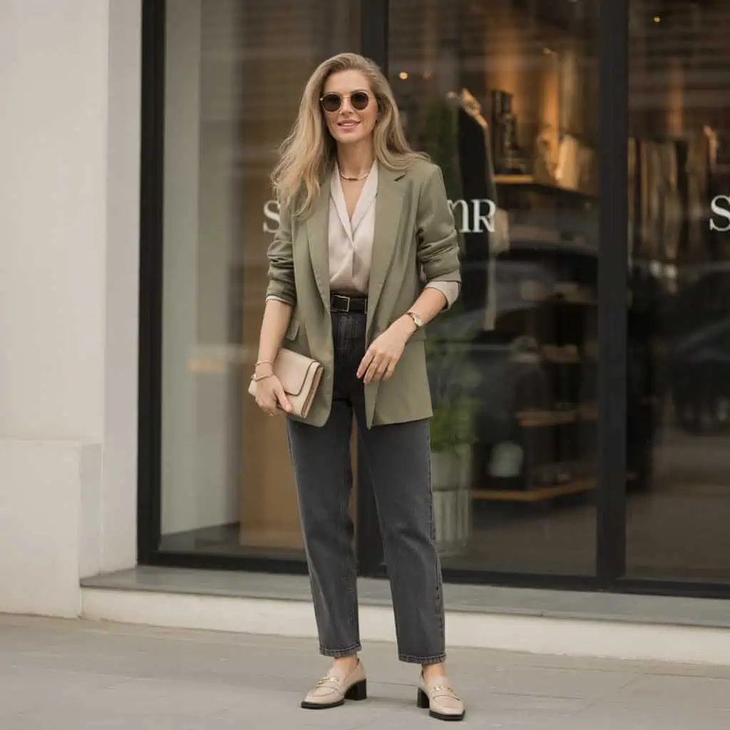 3. Add a structured blazer over jeans