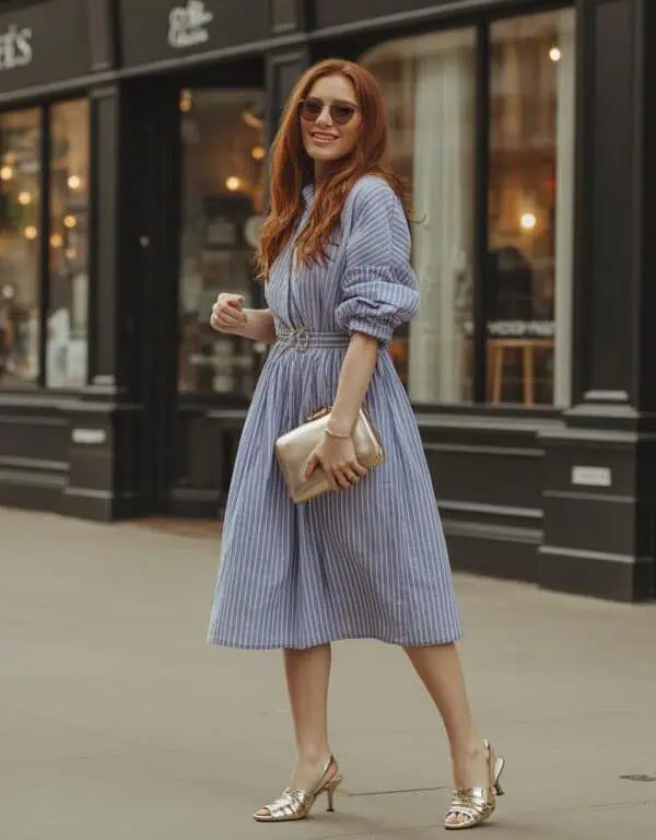 Layering is key in winter, and pairing a midi dress with block-heeled ankle boots is a masterclass in achieving that perfect balance between comfort and style. The midi dress provides that much-needed warmth while allowing for easy movement, making it ideal for both casual outings and more polished events. When you add the sturdy yet chic boots, you not only gain extra height but also ensure that your feet stay cozy against the chill. An oatmeal cardigan adds an inviting texture, while gold chain jewelry elevates the look, giving it a hint of sophistication. It’s a style that exudes effortless confidence, perfect for a day spent in the city.