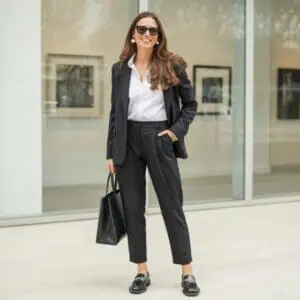 Draping yourself in sleek black invokes an effortless sophistication that’s hard to ignore. The beauty of a monochrome ensemble lies in its simplicity and versatility; it allows your accessories and silhouette to shine. The choice of a loose turtleneck and wide-leg trousers offers both comfort and a polished look, perfect for day-to-night transitions. By incorporating metallic touches like silver layered necklaces and sleek pointed-toe heels, you’re adding just enough contrast to keep things visually interesting without overwhelming the outfit. A black clutch and cat-eye sunglasses tie the look together, epitomizing chic minimalism that’s always in style.