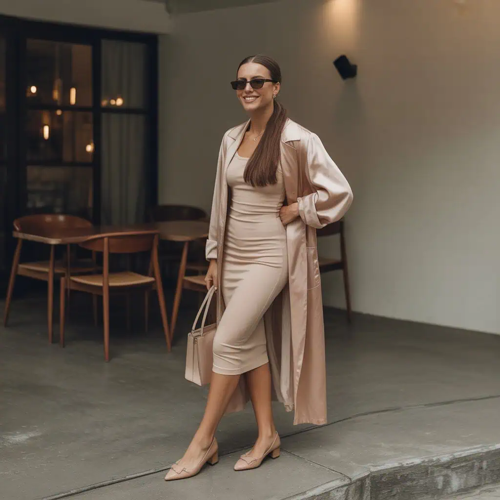 There’s something irresistibly chic about a column dress that flatters every shape while maintaining an effortless allure. The streamlined design offers a sleek profile that visually elongates the body, especially when cinched with a tonal belt at the waist. This creates a subtle hourglass effect that enhances your figure without the fuss of complicated layering. The richness cream adds sophistication, effortlessly transitioning from day to night. Pair with oversized sunglasses and minimalistic accessories for an upscale vibe, while flats help elongate your legs, making every step feel like a runway stroll.