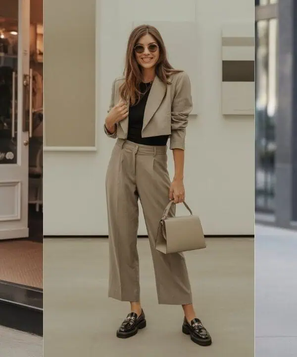 4. High-waist wide-leg pants + fitted top