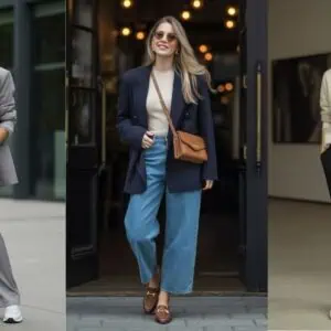 Layering a blazer over a knit combines the best of both worlds—comfort and elegance. The tailored black blazer introduces sophisticated structure, while the beige knit retains a cozy feel, creating a chic contrast. This stylish combination is perfect for transitioning from casual to smart without sacrificing comfort. The straight-leg denim keeps the look grounded and adds a touch of modernity, while layered gold necklaces and a structured tote elevate the outfit beautifully. It’s a balanced approach to dressing that allows for effortless versatility, making it easy to take on any setting with confidence.
