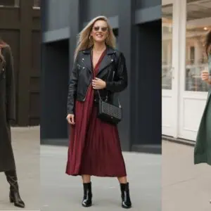 A chic midi skirt can transform your wardrobe, offering both elegance and practicality. The pleated cream design adds movement and interest, while the fitted gray turtleneck provides a sleek and sophisticated contrast. Tucking the turtleneck allows the waist definition to shine, making the outfit polished yet approachable. Nude ankle-strap heels elongate the legs, adding just the right amount of chic allure. Oversized sunglasses and hoop earrings bring a glamorous touch that’s perfect for gallery visits or brunch dates, while a structured mini bag adds a modern edge, making this ensemble effortlessly stylish for various occasions.