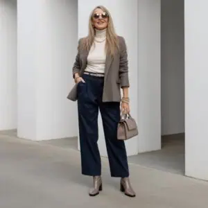 Elevate your everyday style with the chic combination of a neutral blazer and wide-leg trousers. This pairing grants you an effortlessly polished vibe, perfect for both professional and casual settings. A tailored blazer brings sophistication, while a flowing wide-leg design offers comfort and movement—ideal for busy days. Sticking to a neutral palette creates a harmonious look, enhanced by sleek accessories like a minimalist clutch and ankle boots. Whether you’re heading to brunch or an important meeting, this ensemble ensures you appear put-together without overthinking your outfit.