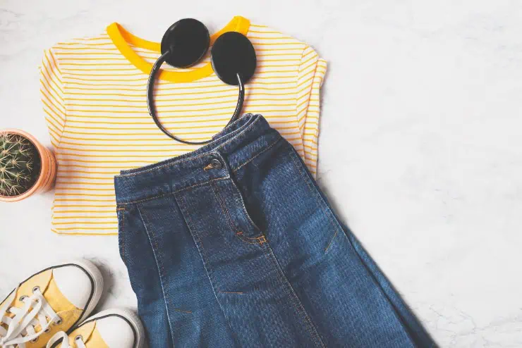 A denim skirt remains a versatile everyday staple, especially when paired with a fitted tee. The tee provides balance, while the skirt offers structure and ease. For pear and hourglass figures, A-line skirts flatter hips, while pencil versions elongate for apple shapes. Petites benefit from above-the-knee cuts, while taller women can wear longer lengths effortlessly. In 2025, denim skirts with front slits or asymmetric hems are especially chic. Paired with sneakers or ankle boots, this outfit feels casual, youthful, and adaptable for different body shapes and daily activities.