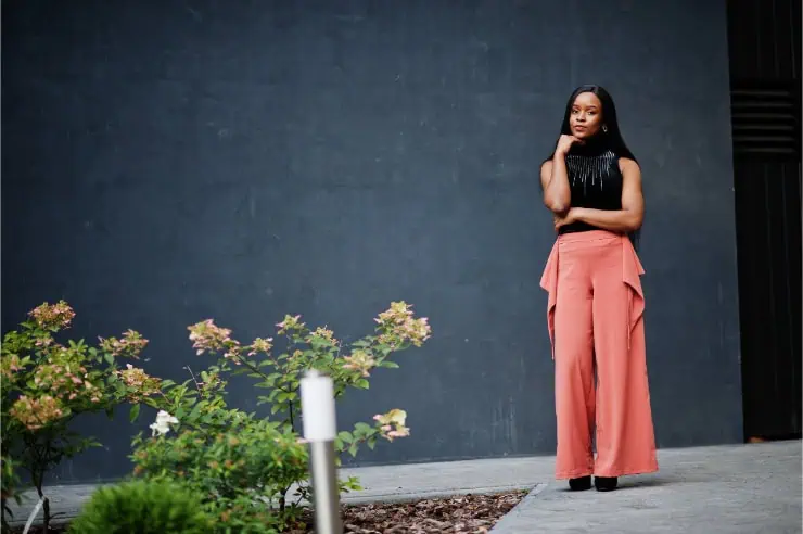 Wide-leg trousers paired with a fitted top create proportion and polish. The flow of the pants balances fuller hips while elongating legs, making them perfect for pear or hourglass figures. For petites, cropped wide-legs with pointed shoes add height, while tall women can embrace full-length drama. A tucked-in blouse or slim sweater completes the look, keeping the silhouette clean. In 2025, high-waisted wide-legs in linen and wool blends dominate, offering structure and comfort. This outfit strikes the perfect balance of relaxed and refined ideal for office days, brunches, or casual dinners.