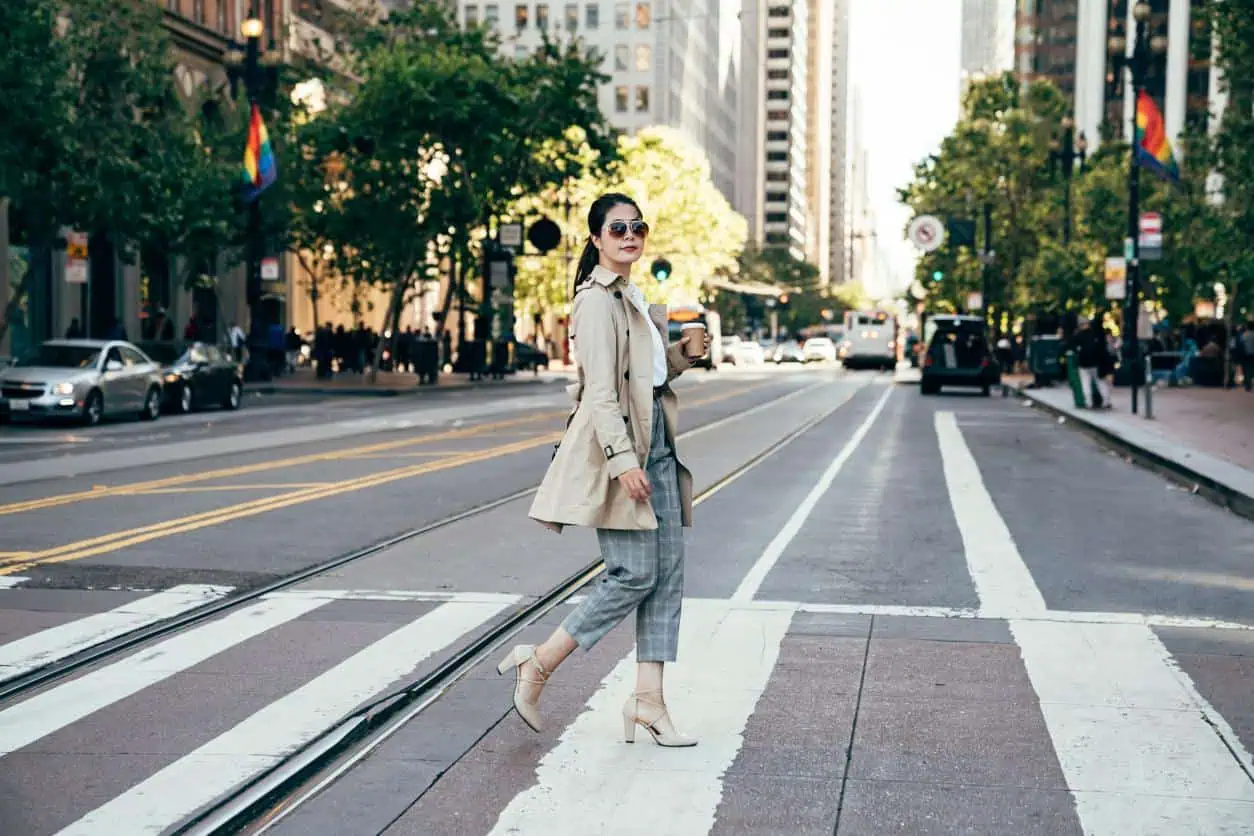 5. Trench Coat + Cropped Pants + Ballet Flats