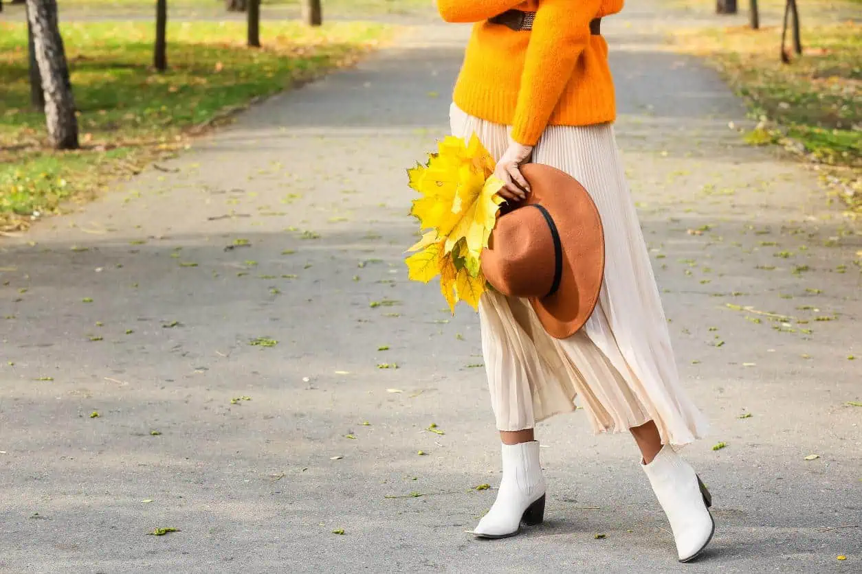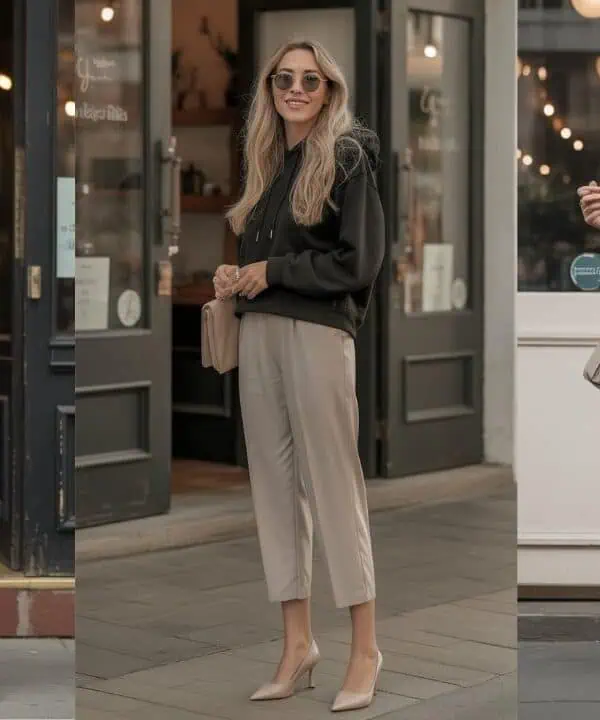 The midi skirt and knit combo is a feminine go-to for transitional weather. Parisian women favor flowy, A-line or pleated skirts paired with lightweight knits in neutral tones. Tucking the sweater slightly at the front adds shape without sacrificing comfort. Ankle boots, preferably leather with a low heel, complete the look with understated polish. This outfit formula is ideal for both museum days and evening drinks, walking the line between cozy and sophisticated. Scarves or delicate jewelry are often layered on top, adding subtle Parisian flair. It’s a gentle nod to elegance that still feels entirely wearable.