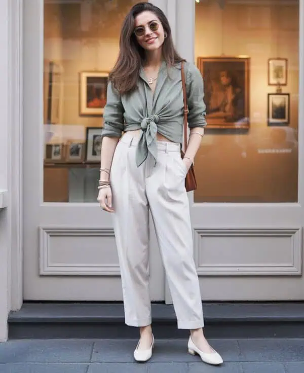 Let’s kick things off with a power move: tailored gray pants. The sharp lines elongate your legs, making you look taller and more statuesque, the tailored fit keeps everything sleek and polished, and the gray color is neutral yet never boring.