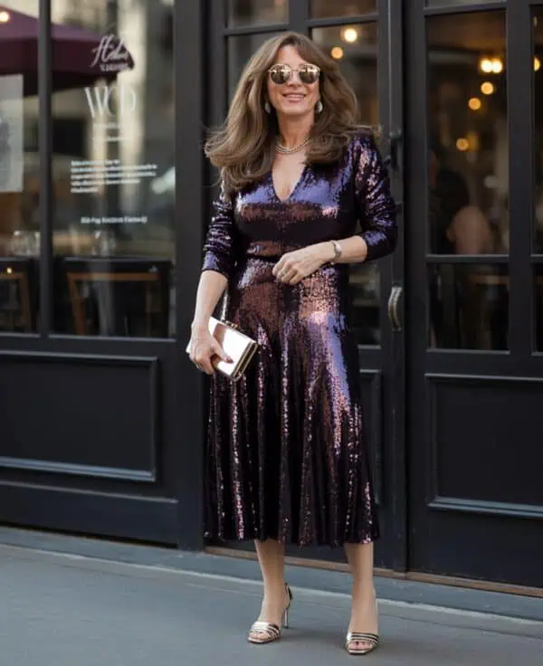 This is a clever blend of style and comfort, and it takes very little effort to pull this off. A gold thin-strap top adds that feminine touch.