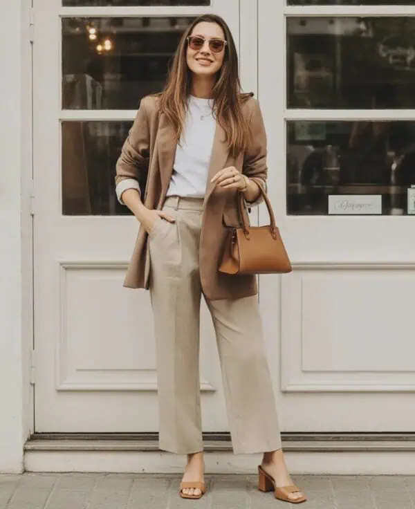 Matching linen pieces do double duty: they feel like loungewear but look completely styled. The texture of the linen adds depth and dimension, while the coordinated silhouette visually elongates the body from top to bottom.