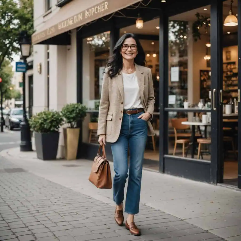 A blazer worn over a classic button-down white shirt is the ultimate wardrobe staple. This pairing radiates timeless elegance and serves as a versatile base for countless outfits.