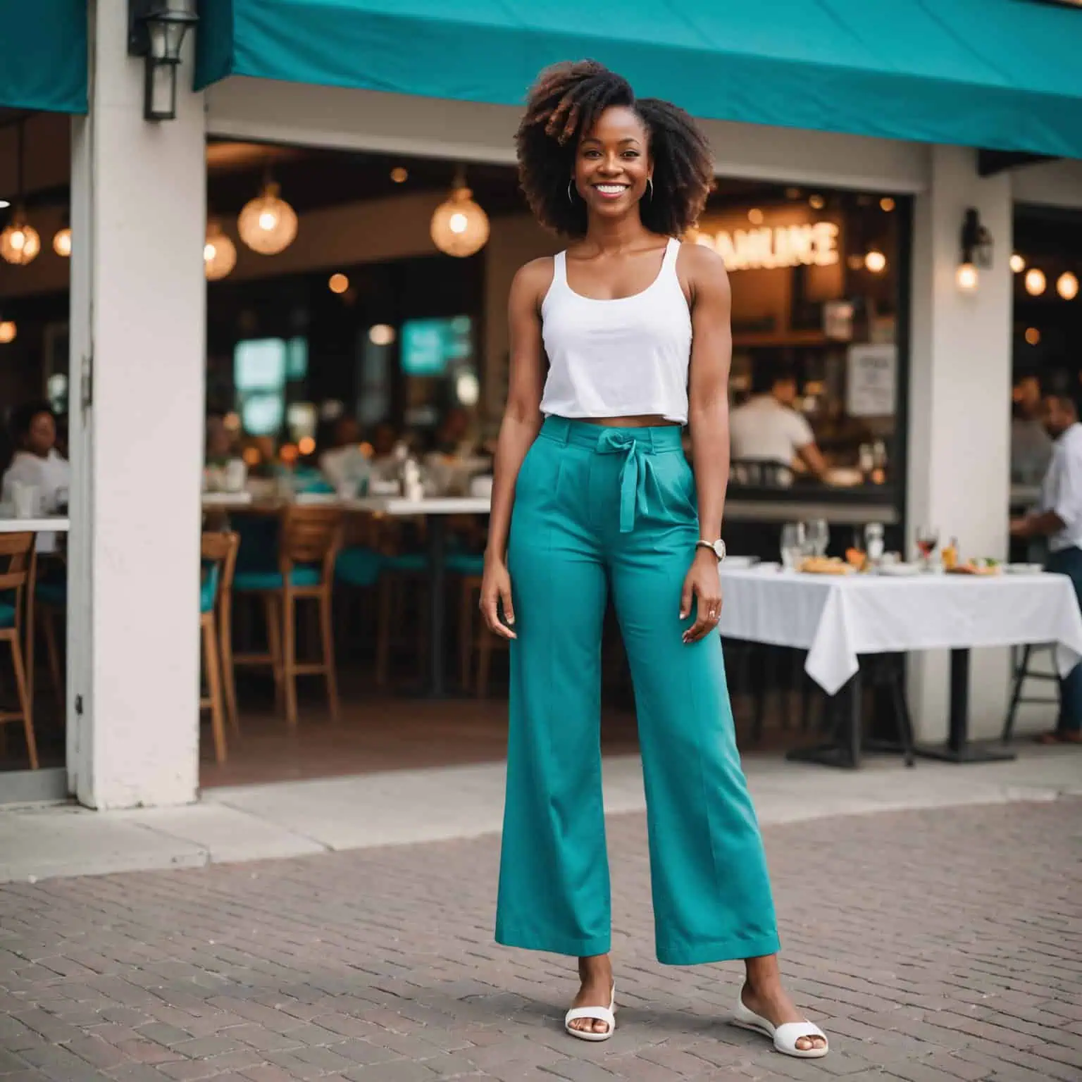 The intricate patterns of a crocheted cami top add a layer of visual interest that pairs beautifully with the simplicity of wide-leg pants. The delicate, handcrafted quality of crochet contrasts with the structured lines of the pants, creating a balanced, casual, and elevated look.