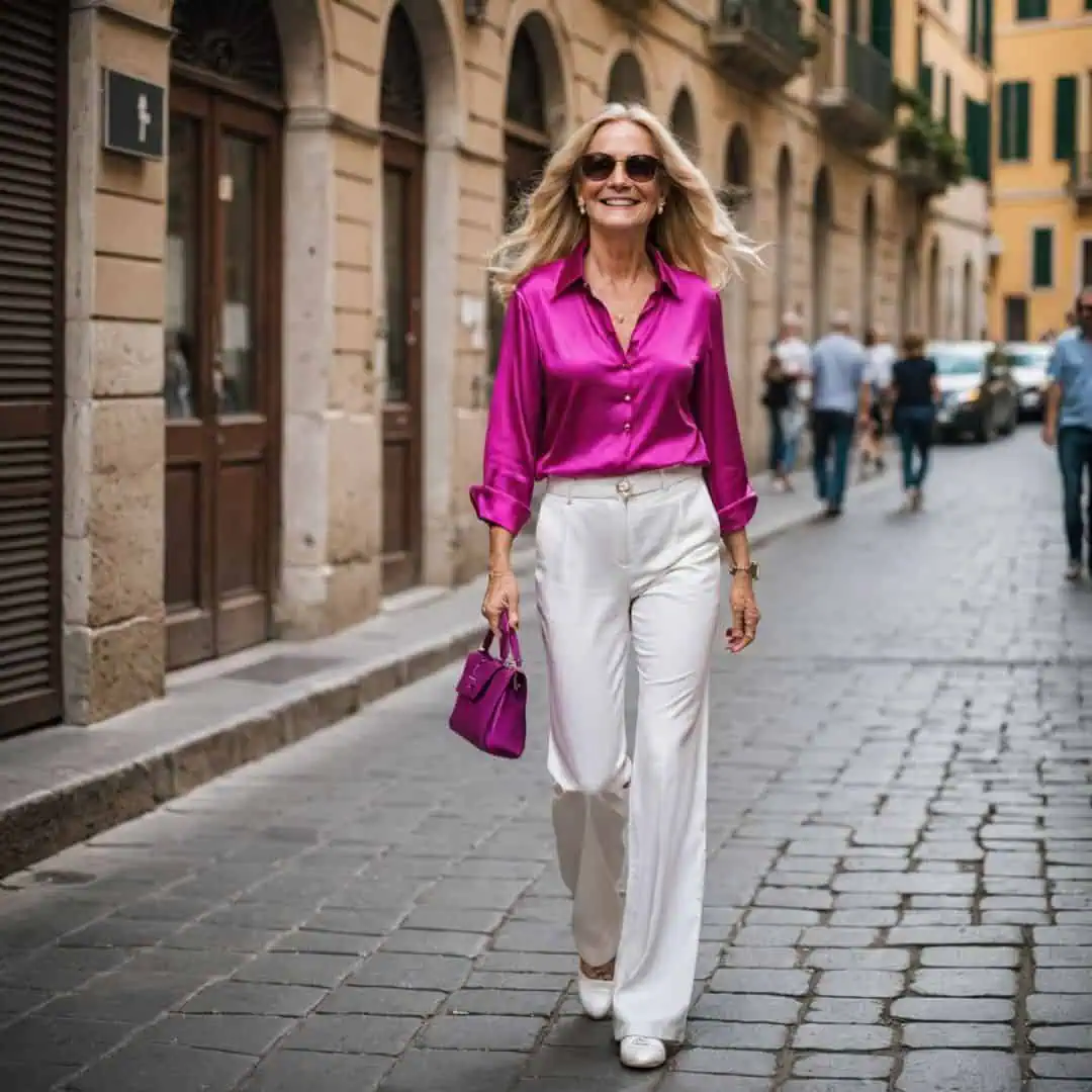 There’s an undeniable allure that satin brings to the table; when you pair a satin blouse with wide-leg pants, you’re essentially merging opulence with ease. The glossy texture of satin creates a striking contrast with the matte finish of most wide-leg pants, forming a visually pleasing ensemble.