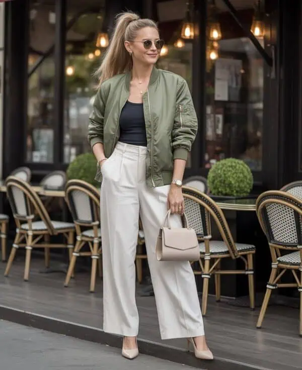A belted wool wrap coat not only exudes elegance but also brings structure to your outfit, making it a flawless companion for any season. The key is the way it cinches at the waist, accentuating your silhouette, whether layered over a fitted turtleneck or a casual tee. The choice of colors, like cream and taupe, adds a touch of lightness, enhancing the coat’s luxurious feel while keeping the look sophisticated. Finish it with ankle boots and statement accessories, and you’ll find yourself effortlessly turning heads anywhere you go. This outfit screams confidence without needing a loud voice.