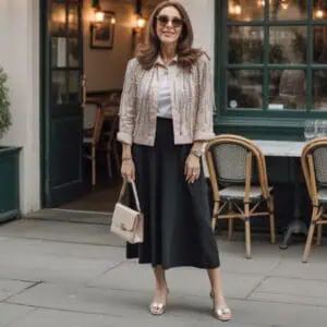 A long skirt can be a fantastic fall staple, but be mindful of hemlines that may feel outdated. Instead of settling for skirts with frumpy, awkward lengths or patterns that don’t flatter, look for versions that hit just above the ankle or have a slight flare. This modern style creates a more flattering shape, especially when paired with a fitted top. Choose timeless prints, like checks or florals, and balance your outfit with stylish flats for an effortlessly refined look. Minimalist accessories allow for a clean finish, ensuring your ensemble feels current while still showcasing your individual style.