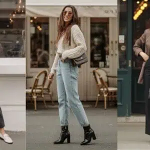 Opting for a cardigan paired with jeans presents an effortlessly chic vibe that strikes the perfect balance between comfort and style. The light gray knitted cardigan adds a layer of warmth without overwhelming the silhouette, making it an ideal choice for transitional weather. A fitted white tee underneath keeps the look fresh and clean, while classic mid-wash straight-leg jeans offer a timeless touch that flatters all body types. To complete the ensemble, beige ballet flats exude elegance while ensuring comfort for those busy, on-the-go days. Delicate gold jewelry adds just the right amount of sparkle, and oversized sunglasses provide a touch of glam, making this outfit suitable for everything from brunch with friends to an afternoon stroll.