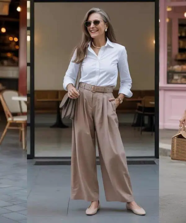 3. Wide-Leg Linen Trousers and a Cotton Poplin Blouse